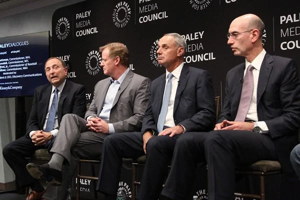Gary Bettman/NHL, Roger Goodell/NFL, Rob Manfred/MLB, Adam Silver/NBA at the Paley Center in Manhattan in 2017 (Source: Sports Business Journal)